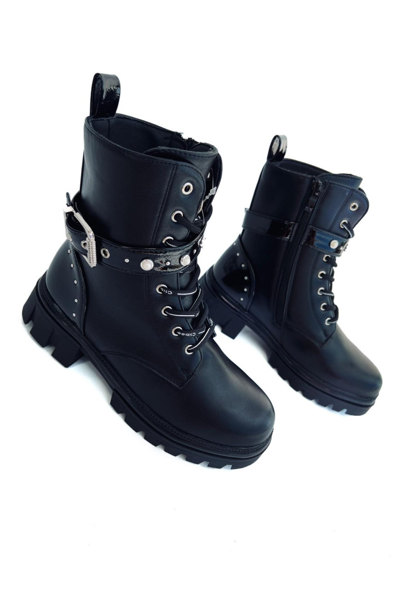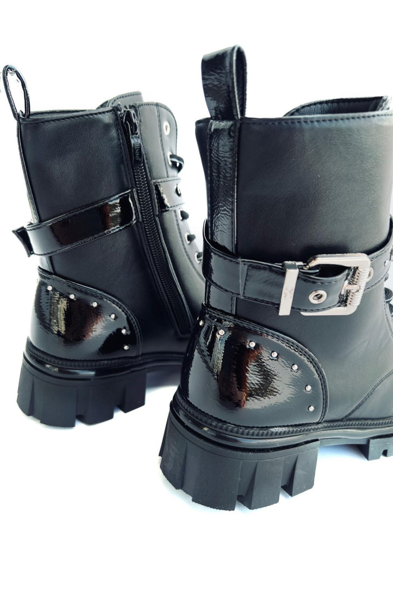 Botki czarne dla dziewczynki z efektownym ozdobnymi paskami