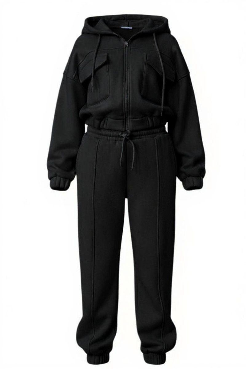 2-częściowy zestaw: bluza z kapturem i suwakiem oraz spodnie z elastyczną talią i sznurkiem.