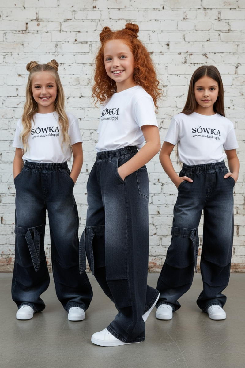 Praktyczne i stylowe spodnie dla dziewczynki, dostępne w rozmiarach 134–164. Wykonane z miękkiego, elastycznego jeansu,  w tym 95 % bawełna, zapewniają komfort przez cały dzień, do zabawy, zajęć szkolnych i weekendowych wyjść.